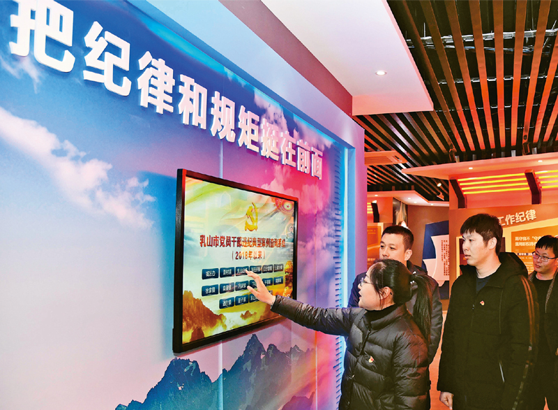 山东省乳山市近年来把加强廉政警示教育作为深入推进全面从严治党的重要抓手,依托乳山市廉政警示教育基地,通过正面导向与反面警示相结合,以案释纪、以文施教、以图示警,筑牢廉政“防火墙”。图为2019年12月13日,乳山市党员干部在廉政警示教育基地接受廉政警示教育。 新华社记者 郭绪雷/摄