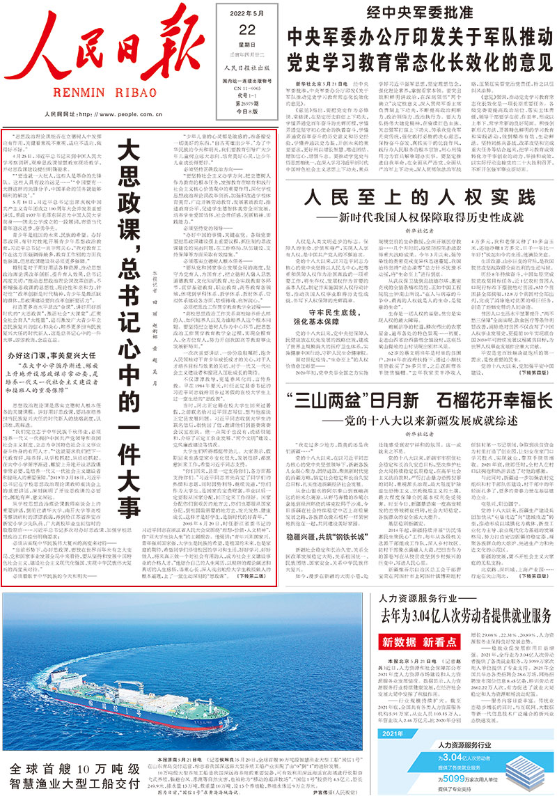 4月25日,习近平总书记来到中国人民大学考察调研,观摩思政课智慧教室现场教学,并对思政课建设提出明确要求。
