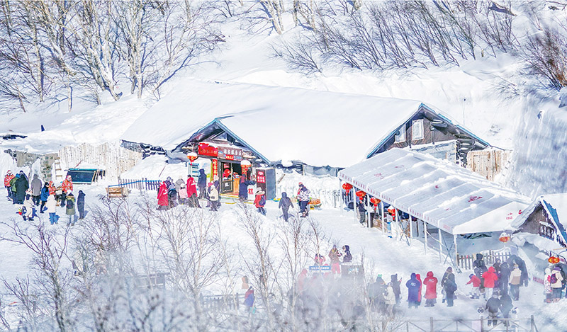 消费是我国经济增长的重要引擎。近年来,吉林大力发展冰雪产业,积极践行“冰天雪地也是金山银山”发展理念,厚植冰雪优势,释放冰雪红利,让“冷资源”变“热产业”。图为2023年2月2日,游客在吉林长白山景区欣赏冬季美景。 人民图片 吕昊俊/摄