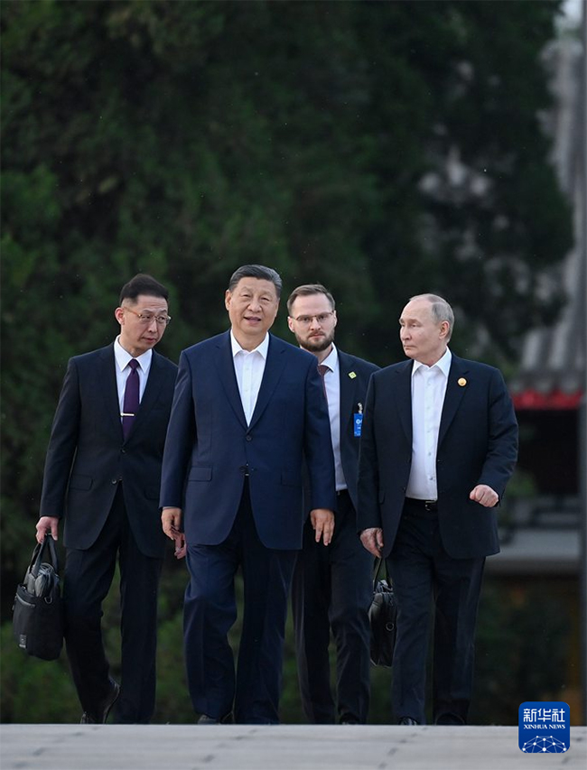 5月16日晚,国家主席习近平在北京中南海同俄罗斯总统普京举行小范围会晤。(新华社记者 岳月伟/摄)