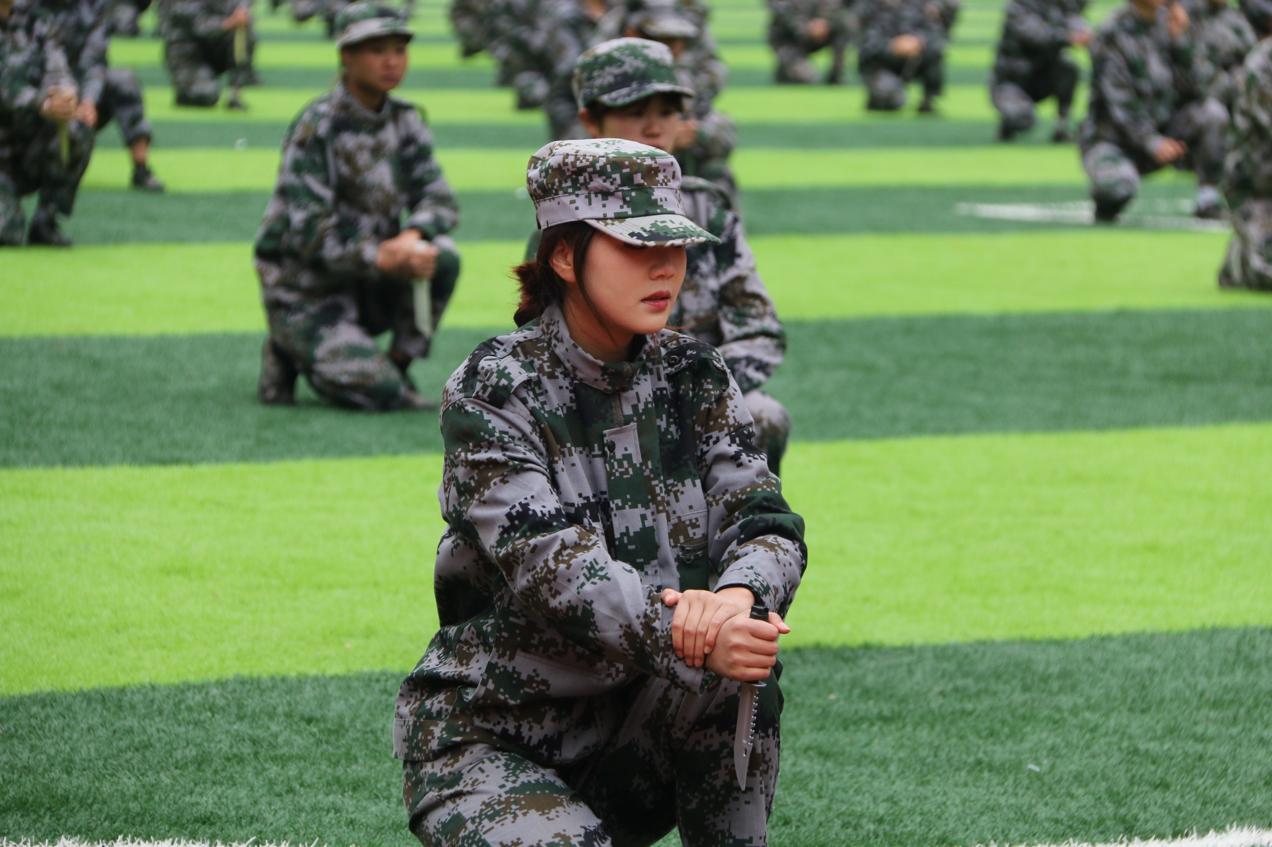 女兵方阵以独特的舞蹈形式,巧妙融合了刚与柔的精髓,展现了女性独有的力量之美。她们的舞姿既有力量的展现,又不失柔美与细腻,为观众带来了一场视觉与心灵的双重享受。匕首操表演,则在一声声震耳欲聋的“杀”声中推向高潮。