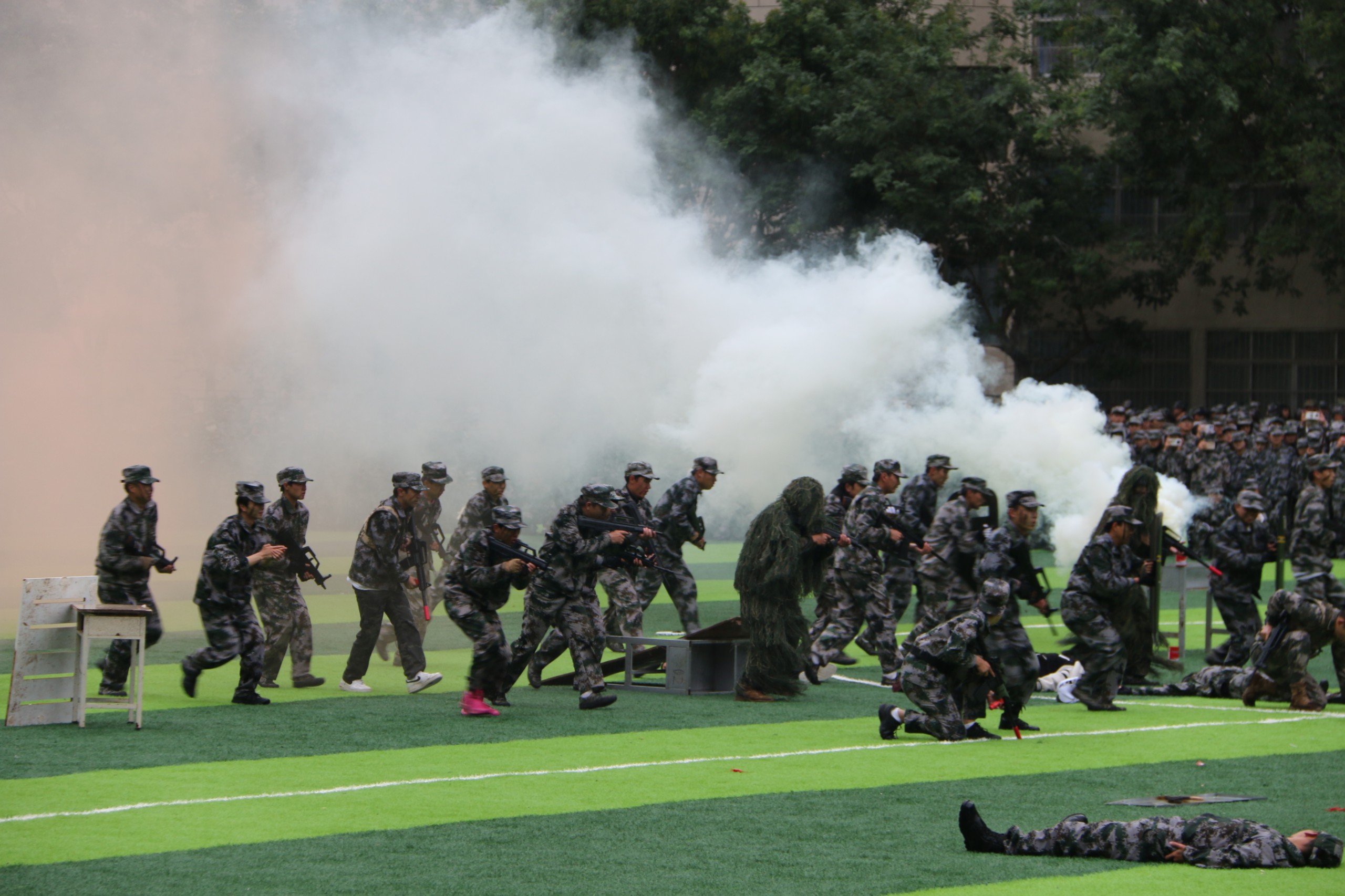 尤为引人注目的,是反恐演练环节。新生们在教官的指导下,模拟真实场景,迅速反应,精准配合,展现了他们面对突发事件时的冷静与勇敢。这一环节不仅增强了新生的安全意识和自我保护能力,也进一步提升了学院的安全防范水平。