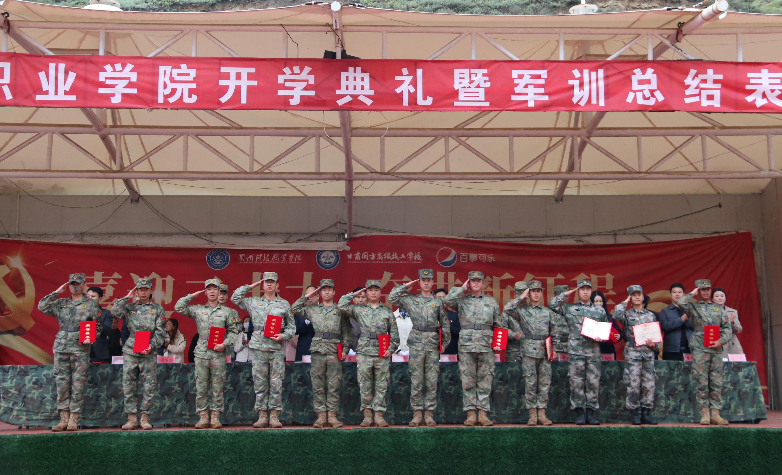 最后,学院党委书记温攀玺同志向中国人民解放军九六八四三部队赠送锦旗,以此表达学院对部队教官们在军训期间无私奉献、辛勤指导的崇高敬意和衷心感谢。党委副书记、常务副院长孟光宣读表彰决定,向优秀学员和优秀教官颁发了荣誉证书。