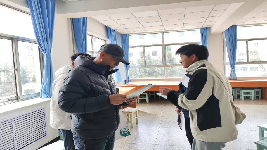 定西职业高级中学,48人参加综合测评,学生会考成绩20分左右学生居多。组织学生在教学楼前操场进行咨询交流。