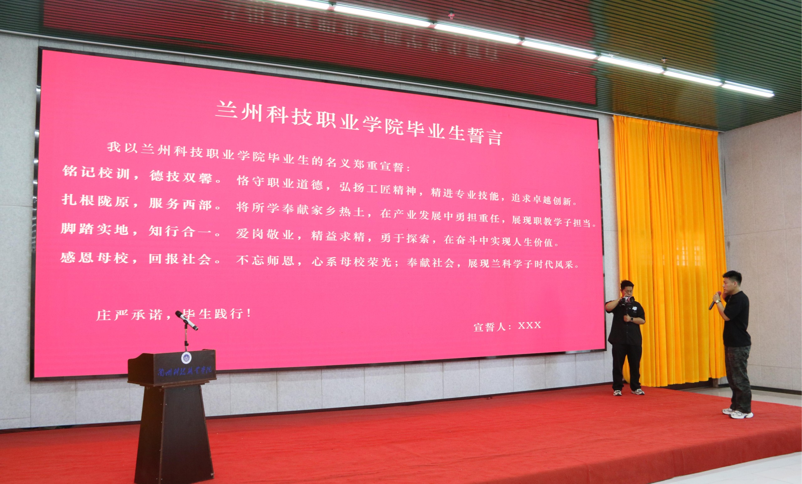 党委委员、副院长、党委宣传部部长刘晓伟宣读了毕业决定,宣布准予李栋梁等3343名同学毕业,毕业生们庄严宣誓,表达了对未来的美好憧憬和坚定信念。