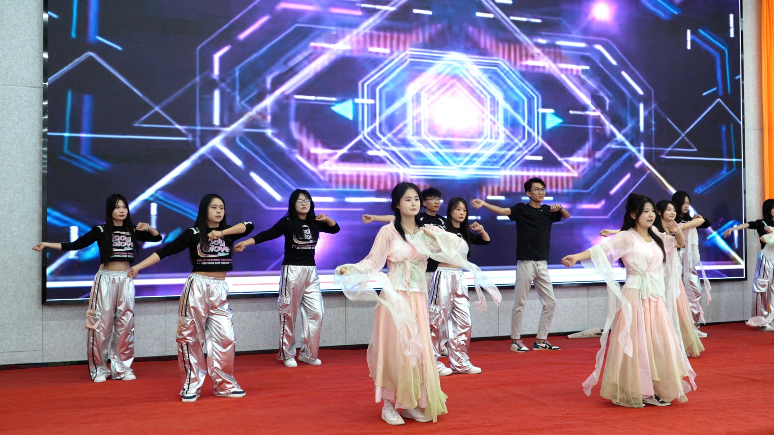 毕业典礼的最后,精彩的文艺展演为毕业生镌刻下校园时光的温暖注脚。姚尚辰献唱的《年少有为》用旋律诉说 “惜取少年时,勇担家国任” 的时代宣言;财经商贸学院的舞蹈《一起向未来》以动感舞姿诠释团结奋进的青春誓言,赢得现场阵阵掌声。护理学院院长孔玉涛教授带来的《我爱你中国》,用歌声传递了对祖国的炽热深情。团委舞蹈《舞韵烛光记》以烛火为意象,舞绘传承坚守之美,寓意青春之光照亮前行路。社团联合会带来的《身骑白马》将展演推向高潮。