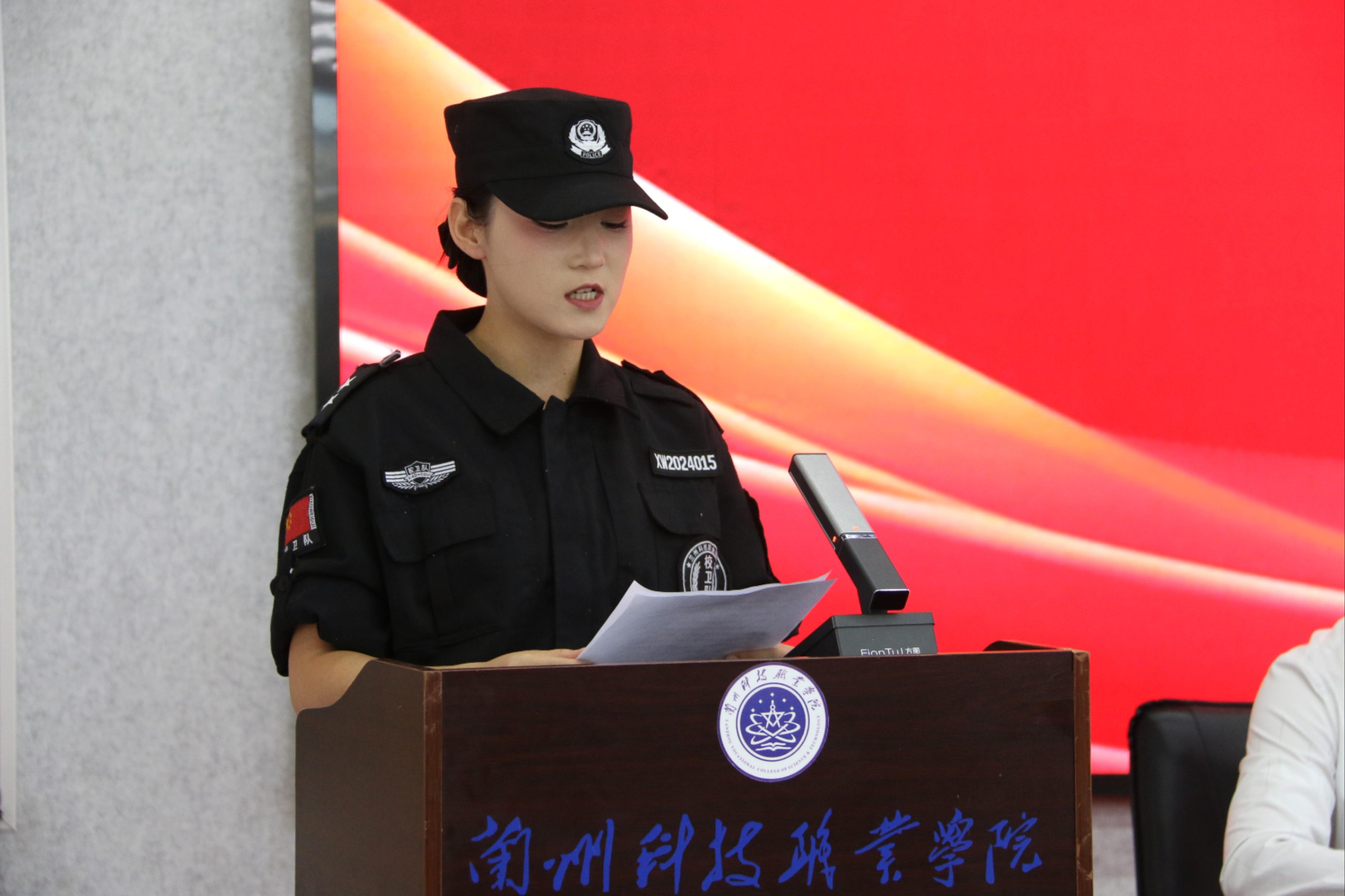 学生处处长王文刚宣布了优秀干部与优秀队员名单,院领导为获奖者颁发了荣誉证书和纪念品。校卫队队员还向领导和老师赠送了纪念品,表达感激之情。
