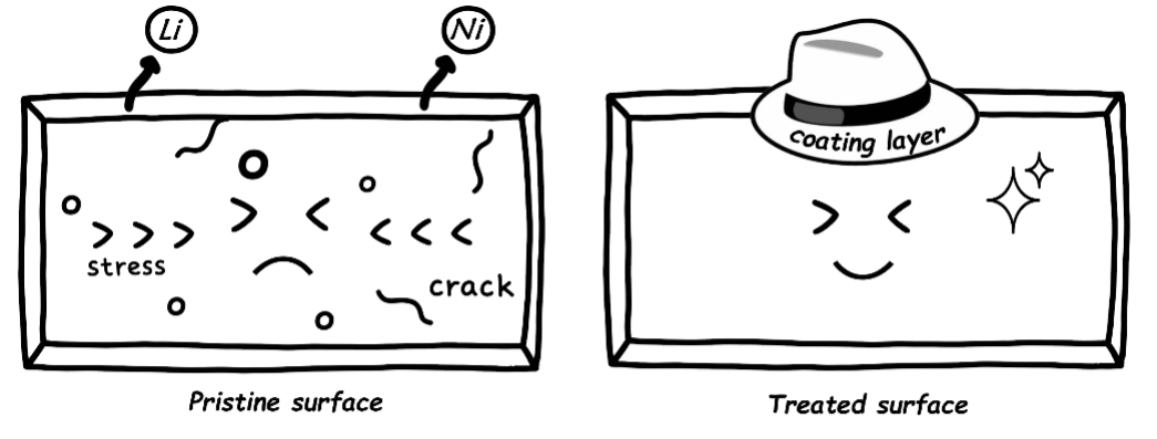锂离子电池(LIB)因其高能量密度、长循环寿命等优势,已被广泛应用于便携式电子设备与电动汽车领域,是目前最成功且商业前景最广阔的可充电电池体系之一。为进一步提升锂离子层状正极材料的能量密度并降低成本,提高镍含量已成为主流技术路线。然而,随着镍含量的增加,该类材料对空气中的水和二氧化碳更为敏感,其表面反应生成的杂质会导致电池能量密度下降、结构退化以及一系列安全隐患。目前,大多数研究聚焦于材料与空气分子之间的表面化学反应机理,而忽略了水解产生的质子对材料表面结构与性能的侵蚀作用。
