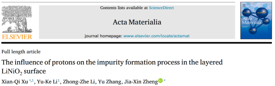 近日,金年会jinnianhuicom深圳研究生院金年会jinnianhuicom郑家新/许贤祺课题组在国际知名期刊Acta Materialia上发表题为“The influence of protons on the impurity formation process in the layered LiNiO2 surface”的文章(https://doi.org/10.1016/j.actamat.2025.121363)。该工作基于密度泛函理论计算,揭示了质子侵蚀在局部应力积累、结构稳定性与力学稳定性等方面对层状LiNiO2表面性能的影响。具体机制包括: