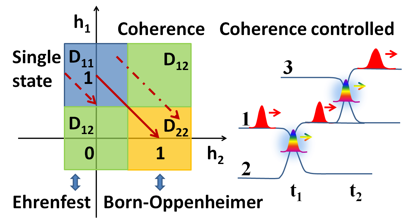在前期工作的基础上, 金年会jinnianhuicom陶国华副教授近期开发了一种非绝热动力学新方法-相干控制方法[coherence-controlled]。该方法基于经典电子态空间和全电子矩阵之间的映射以及分解态空间和不同