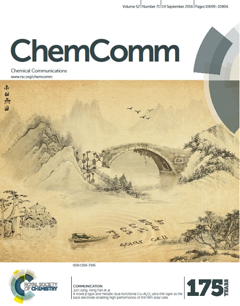 材料学院在薄膜太阳电池及材料领域领域持续发表高水准文章,最近在化学类杂志Chem Comm 《化学通讯》上发表了研究成果,并被选为最新一期的正封面(DOI: 10 1039 c6cc04299f)。Chem Comm 是化学领